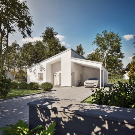 Lindås är ett modernt, välplanerat hus med effektiva ytor och rest tak som skapar rymd. Från entrén öppnar huset upp inåt. Vardagsrummet har stora fönster i gavelhörnen och utgång till trädgården. Köket är i öppen planlösning. Två mindre sovrum delar toalett med dusch, medan föräldrasovrummet har dressrum och egen toalett. Från carporten nås groventré och förråd, båda under tak.